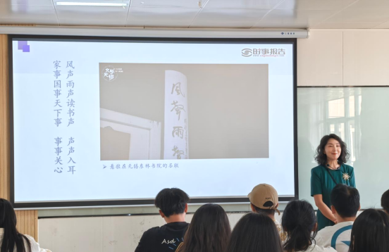 姚校长由无锡东林书院的著名对联引入,提醒学生要关注身边之事,更要心怀天下。而教育,正是连接个人成长与国家发展的桥梁。从这副对联出发,姚校长带领同学们一同探讨我国从教育大国迈向教育强国的征程。
