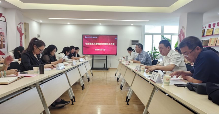 2025年5月14日,马克思主义学院召开教职工大会,马克思主义学院全体教职工参会。会议由院长闫团结院长主持,聚焦年度工作目标任务部署及学科高质量发展,锚定方向、凝聚共识。