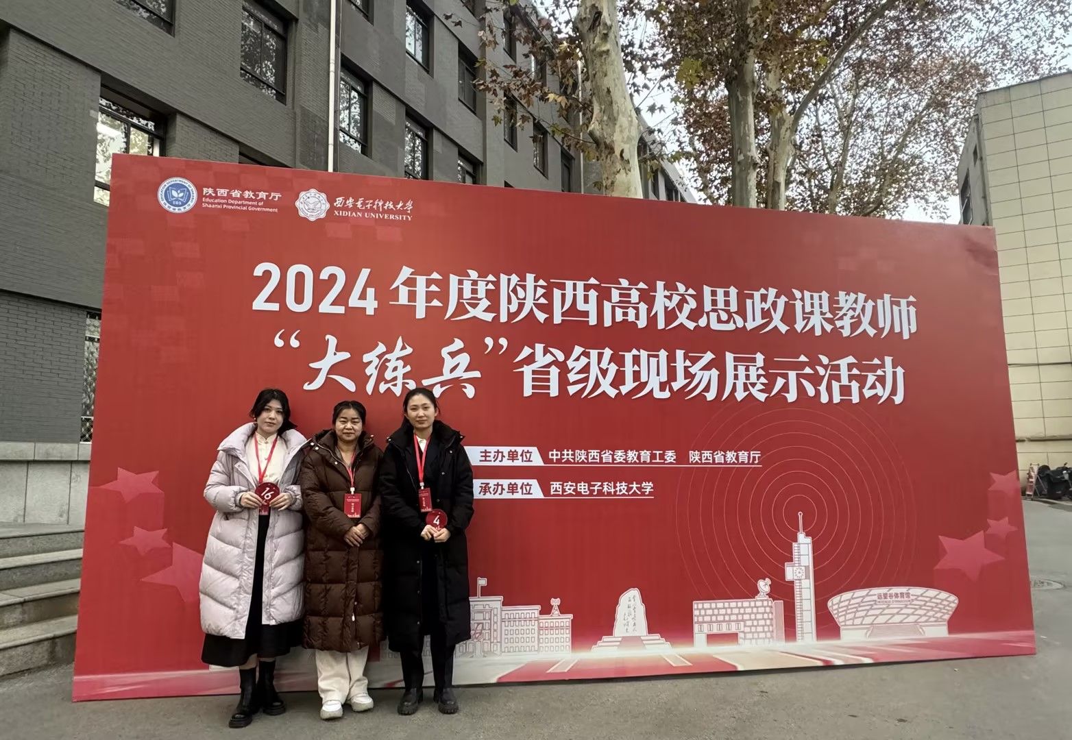12月25日,由陕西省教工委、陕西省教育厅主办的2024年度陕西高校思政课教师“大练兵”省级现场展示活动在西安电子科技大学隆重开幕,西安培华学院马克思主义学院副院长霍艾湘教授、马克思主义原理教研室讲师景安娜、习近平新时代中国特色社会主义思想教研室助教毕静叶子代表学校参加现场展示。