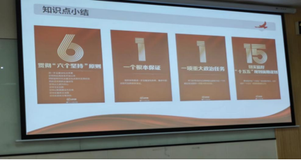 为使同学们扎实搞好全会精神进课堂“小组宣讲”活动,教研室老师提前部署安排提出明确要求,同学们普遍通过查阅资料、收集视频、制作PPT、小组研讨等方式做好课堂展示准备工作,注重从这次会议的时代背景、主要内容、改革举措、重点方向、数据分析、重大意义、未来展望等方面进行全方位探讨交流。有的小组同学广泛引用专家解读数据来增强说服力,有的小组同学对全会精神进行了系统梳理总结形成“小知识点”,有的小组同学对全面深化改革的“七个聚焦”重点内容进行了解读,有的小组同学还对全面深化改革开放的未来前景进行了愿景展望。同时,在小组同学进行宣讲展示的基础上,任课教师对大家所宣讲内容进行现场讲评,对存在的相关问题和模糊认识加以引导纠正,确保了全会精神学习贯彻的正确政治方向。