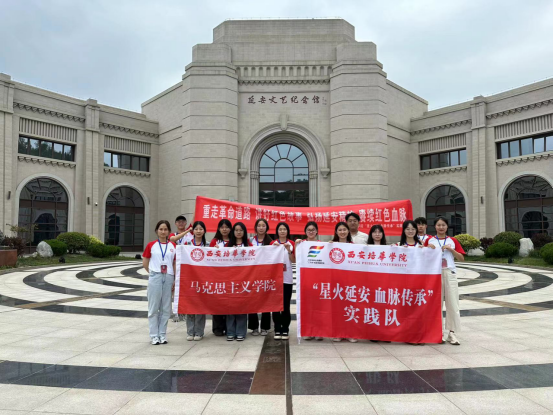 习近平总书记曾满怀深情地说,延安革命旧址见证了我们党在延安时期领导中国革命、探索马克思主义中国化时代化的光辉历程,是一本永远读不完的书。为探寻延安红色文化,传承红色基因,激励青年爱国情怀,领悟延安精神的历史价值和时代意义,2024年7月9日,西安培华学院马克思主义学院“星火延安 血脉传承”实践队来到了延安文艺纪念馆、延安革命纪念馆进行参观学习。