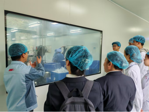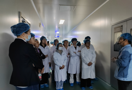 活动第二环节,助理总裁安慧和药厂其他工作人员带领师生集中参观了药厂、药材库,药品生产线,介绍了药厂的基本情况、生产剂型以及制剂。参观过程中,通过工作人员的讲解,师生们详细了解了中药产业原材料来源、采购、原材料处理加工到药物既定处方进行提取,做成制剂,形成包装再到销售到医院或药店的整个药品生产流程,直观感受GMP(药品生产质量管理规范)标准在实际生产中的应用,又是一场沉浸式教学。