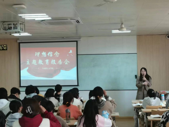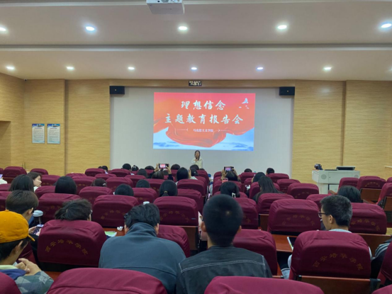 为了将习近平总书记关于理想信念的相关论述如:世界观、人生观、价值观是“总开关”;马克思主义、共产主义理想是共产党人的“命脉和灵魂”,是经受住任何考验的“精神支柱”。理想信念就是共产党人精神上的“钙”,没有理想信念,理想信念不坚定,精神上就会“缺钙”,就会得“软骨病”等观点进课堂、进头脑,进而在学生中得到落实和贯彻,我们纲要教研室在10月份的最后一周,借助“道德与法治”课堂组织师生举办了主题为“理想信念主题教育报告会”。