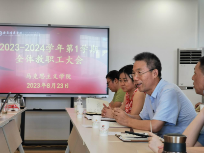 为了切实做好新学期教科研工作,马克思主义学院于2023年8月23日14:30在博远楼2501B召开2023-2024学年第一学期全体教职工大会。会议由寇军强副院长主持,闫团结院长、霍艾湘副院长、潘迎丽助理等院领导及全体教职工参会。