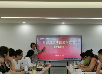 请各教研室参加暑期教育部全国高校思想政治理论课教师社会实践的教师代表和大家分享研修心得。18位老师分别去往四川大学、贵州师范大学、湘潭大学、苏州大学和华南师范大学等五所院校,听报告、学理论、亲实践,不但进一步提升了我校思政课教师的理论素养,而且加强了实践认知和坚定了理想信念。寇副院长特别强调,作为思想政治理论课教师,一定要将这次学习的成果融于课堂教学,丰富教学素材,激发课堂活力,深化思想政治理论课教学改革,进一步提升思想政治理论课教育教学质量,进一步提高思想政治理论课的吸引力和感染力,引导大学生树立正确的世界观、人生观和价值观。