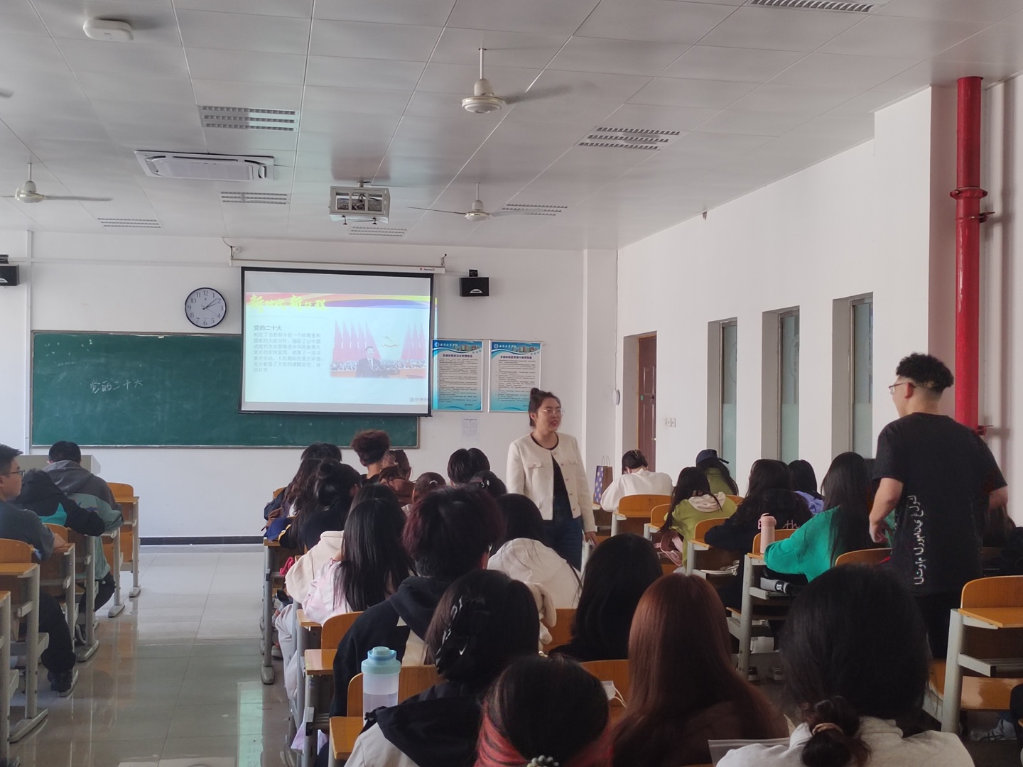 3月6日学校正式开课以来,每位教师在第一堂课上,重点宣讲党的二十大精神:让学生们明白新时代10年发生历史性变革的根本原因是什么;让学生们深刻领悟“两个确立”对新时代党和国家事业发展、对推进中华民族伟大复兴历史进程具有的决定性意义;引导学生深刻认识推进中国式现代化是一项前无古人的开创性事业;帮助学生们认清时代责任和历史使命,牢固树立成为新时代好青年的自觉自信。