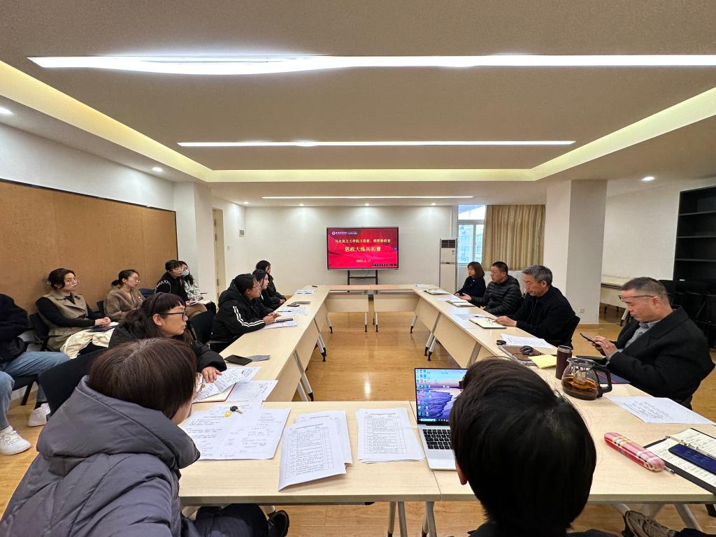 为深入学习习近平总书记在学校思想政治理论课教师座谈会上的讲话精神,进一步加强思政课教师队伍建设,不断深化思政课改革,提升思政课教学质量,2月17日,马克思主义学院习近平新时代中国特色社会主义思想概论教研室在博远楼2501会议室顺利举办了2023年度思政课教师“大练兵”教学展示活动初赛。本次教学展示活动邀请马克思主义学院特聘专家闫团结教授,副院长寇军强博士,副院长霍艾湘教授,杨权利教授担任本次比赛评委;同聪慧、王艳荣和沈毓娜三位教师参加了本次教学展示活动,马院领导班子成员、部分思政课教师进行了现场教学观摩。