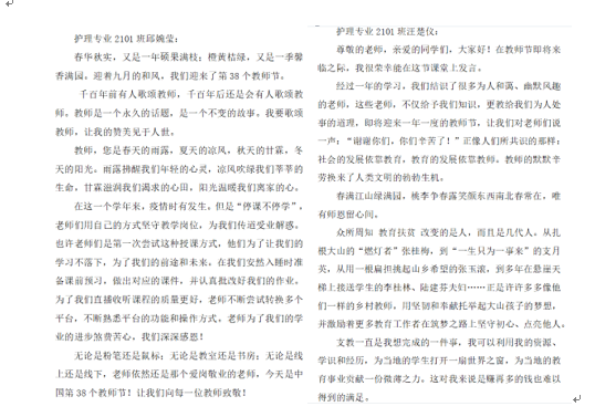 沈毓娜老师在广编2101、2102班开展了关于感恩教师的教师节活动,让同学们谈自己人生道路中印象最深且对自己影响最深的一位老师,描述了他们之间发生的故事以及表达了感恩之情,让同学们抒发对老师的情感。