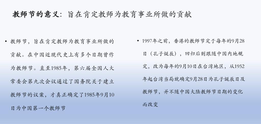 袁娜老师组织播主2103、2104班的同学,专门做了一个“感恩教师节”的主题小活动,播主2103班安泽同学为大家介绍了教师节的由来,以及世界各地的教师节,获得同学们的称赞。在活动尾声,全体同学在线上向老师问候,祝老师教师节快乐。