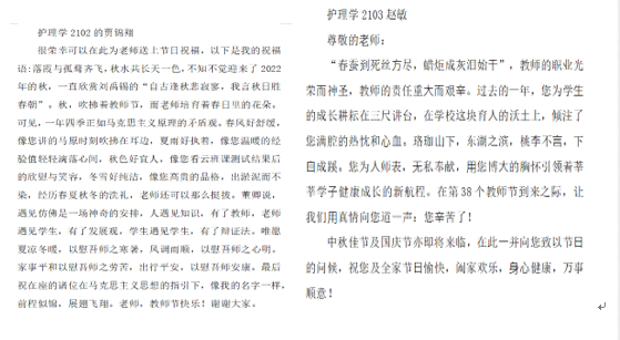 袁秦英老师组织学生采用诗词歌赋的形式表达教师节节日祝福。