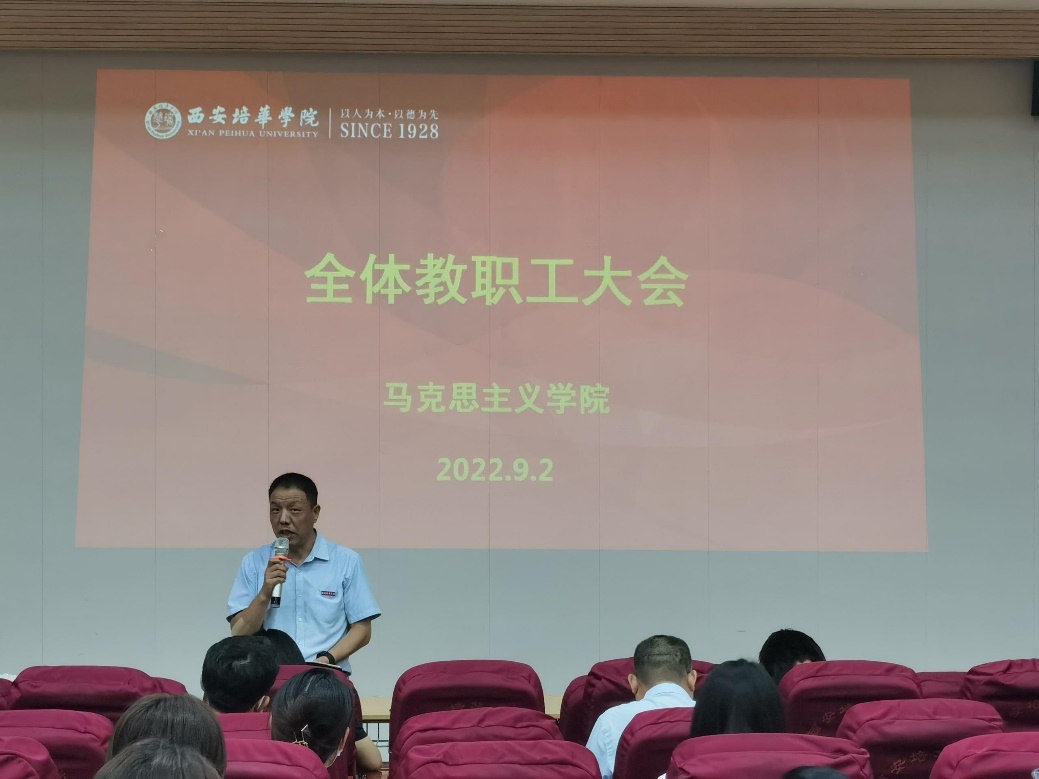 2022年9月2日下午,马克思主义学院全员大会在博远楼J201顺利召开。马克思主义学院副院长霍艾湘教授对第一周的《马克思主义基本原理》课程线上教学工作给予了高度肯定,同时对课堂教学、集体备课、青年教师指导等工作提出了进一步的目标和要求,以更好地提升教学质量,促进青年教师的快速成长。