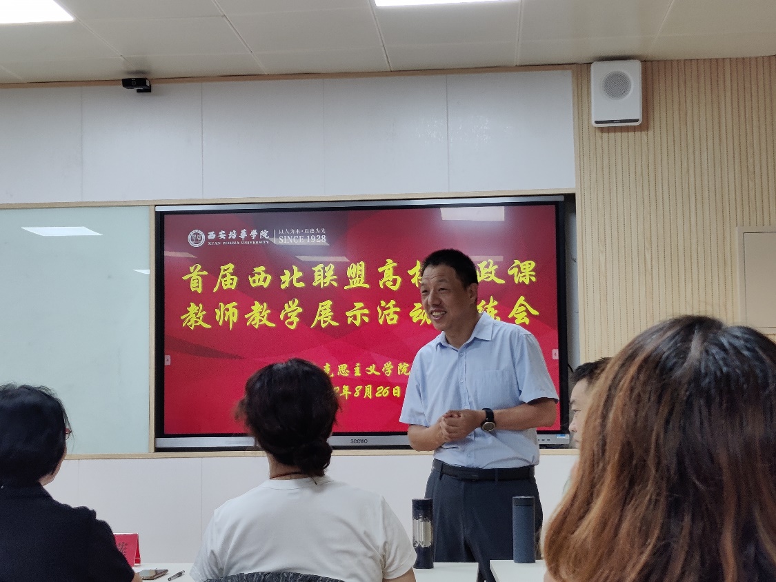 8月26日上午,马克思主义学院在长安校区博远楼2209教室举行首届西北联盟高校思政课教师教学展示再演练活动。