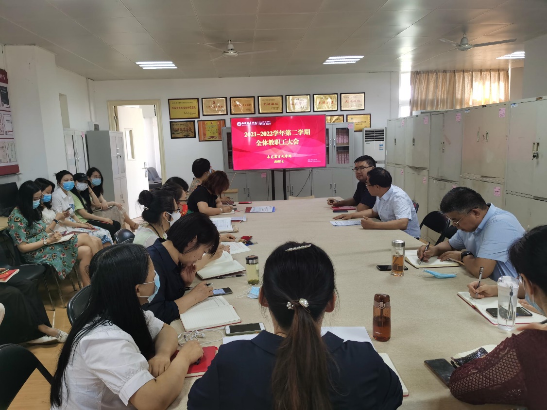 2022年6月2日在2501A召开了马克思主义学院全体教职工大会。田院长针对近期的工作和计划做了重要的讲话。