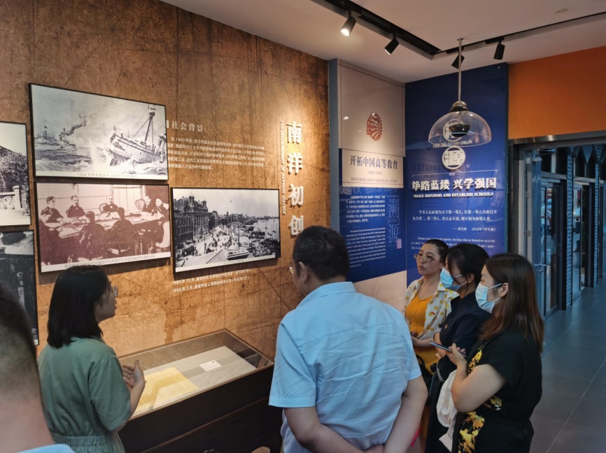 跟着展馆中大量图片、图表、沙盘、实物等资料的呈现,全方位鲜活地再现了交大西迁那段动人的辉煌岁月。看着纪念馆中一张张凝结着交大深厚文化底蕴的老照片,大家心中不禁泛起浓浓的景仰之情。从溯源馆到西迁馆,发黄的纸页上记录着交大走过的风雨路程。在讲解员激情澎湃的讲解中,感怀那一段段动人的西迁故事,为交大深厚悠久的办学历史感慨不已,被西迁前辈们胸怀大局、无私奉献、艰苦创业的西迁精神深深震撼。