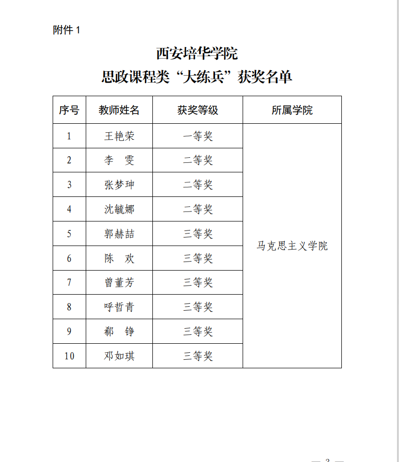 后附:培华党发〔2023〕8 号《关于表彰 2023 年思政课教师“大练兵” 获奖教师的通报》
