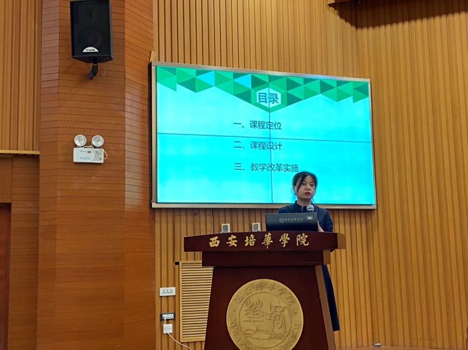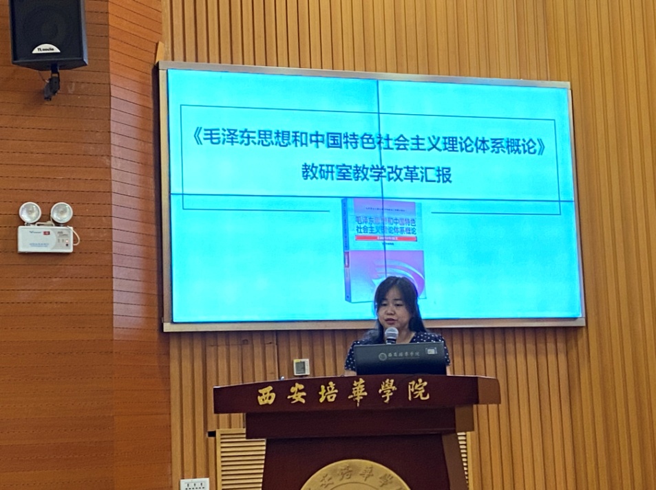 简爱副教授从社情、学情分析入手,紧密围绕《中国近现代史纲要》课程定位和培养目标,分享了课程改革原则和思路。简老师重点以“诗化教学法与《纲要》课教学”为例,讲述了如何在教学中贯彻落实“一中心两融合三评价”的教学模式。
