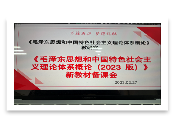 为加深全体《毛泽东思想和中国特色社会主义理论体系概论》教研室老师对《毛泽东思想和中国特色社会主义理论体系概论(2023版)》教材的学习和研究,使全体老师能够熟练运用新教材做充分准备。2023年2月27日15:00,《毛泽东思想和中国特色社会主义理论体系概论》教研室教研室在博远楼2301教研室组织开展《毛泽东思想和中国特色社会主义理论体系概论(2023版)》新教材备课会。