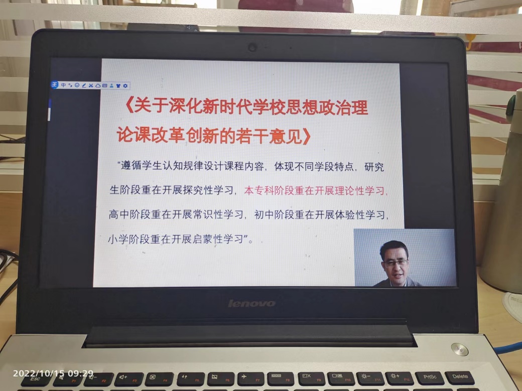 为助力我校《习近平新时代中国特色社会主义思想概论》课程教学工作更好开展,帮助广大教师解决课程开设和教学中遇到的难题与困惑,2022年10月15日和17日,马克思主义学院组织习近平新时代中国特色社会主义思想概论教研室全体成员参与了由高等教育会议中心主办的《习近平新时代中国特色社会主义思想概论》课程开设与教学辅导的三场线上培训课程。