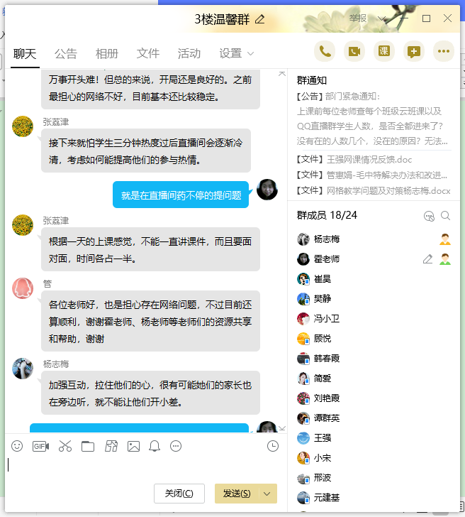 2月初我自己了解各种直播工具,考虑学生实际情况,选择了不需要安装APP软件、不占据学生手机内存的QQ群进行直播教学,并配合学生早已安装的云班课APP进行线上混合式教学。
