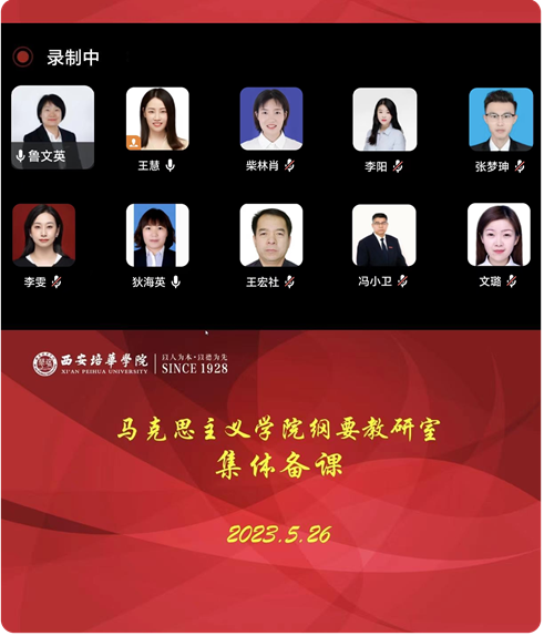 2023年5月26日晚20:00,西安培华学院马克思主义学院中国近现代史纲要教研室开展了线上集体备课会,会议由纲要教研室主任鲁文英老师主持,教研室全体教师参加。
