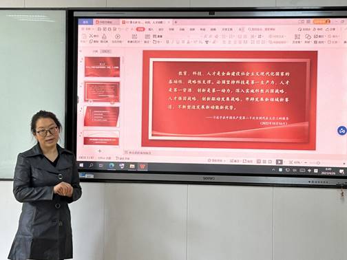 会后,各授课教师对本次教学法活动展开讨论,张晓朦老师表示教育、科技、人才作为一个独立章节首次写进党的报告,反映了我们党对教育科技人才的重视程度越来越高。国家发展靠科技,科技创新靠人才,人才培养靠教育,首先要给学生讲清楚三者之间的关联,具体阐述的时候可以举一些案例来帮助学生理解。沈毓娜老师提出新时代的中国,外部面临激烈的国际竞争和日趋复杂多变的发展环境,特别是美西方对我国实施全方位的贸易战、科技战、人才战等,内部面临紧迫的产业升级、经济高质量发展和人民共同富裕的艰巨任务,国家和社会对高新科技和人才的需求更加迫切,需要通过持续实施科教兴国战略来实现可持续发展的目标。因此,科教兴国战略的使命任务艰巨而神圣、光荣而沉重。