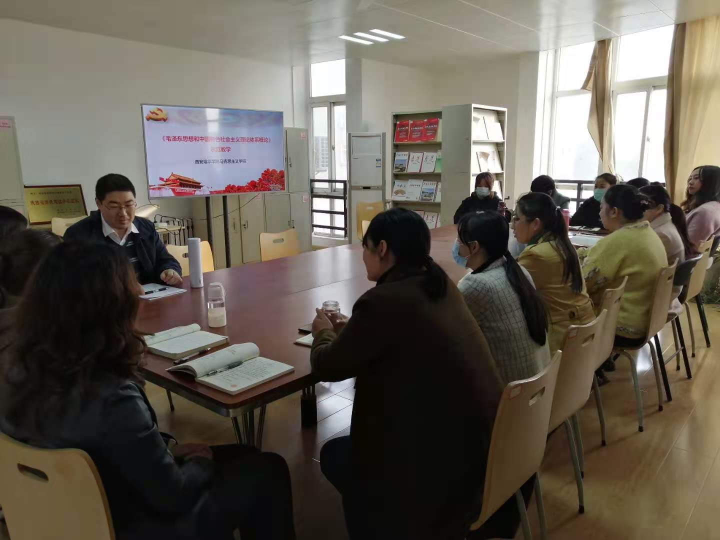 为了促进西安培华学院思政课教学质量上台阶,11月13日下午,西安培华学院马克思主义学院特邀西安电子科技大学马克思主义学院毛泽东思想和中国特色社会主义理论体系概论教研室主任、陕西高校思政课教师大练兵标兵赵常兴副教授来校进行《习近平新时代中国特色社会主义思想及其历史地位》示范教学。讲座在马克思主义学院会议室1310-C进行,毛中特教研室主任霍艾湘老师主持,马院院长史晓眉教授参会,毛泽东思想和中国特色社会主义理论体系概论授课教师参加。