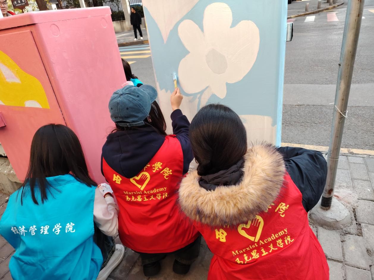 2025年11月21日,西安培华学院马克思主义学院杨志梅老师组织2024汉本英才班学子及社团志愿者,赴西安市新城区通济坊小学周边开展井盖与电箱彩绘志愿服务。活动以美化城市公共空间为切入点,以校社联动为纽带,以美育浸润为延伸,面向社区实际需求,整合高校专业资源与青年志愿力量,用实际行动践行奉献友爱互助进步的志愿精神,展现新时代青年的责任与风采,为城市文明建设注入青春动能。