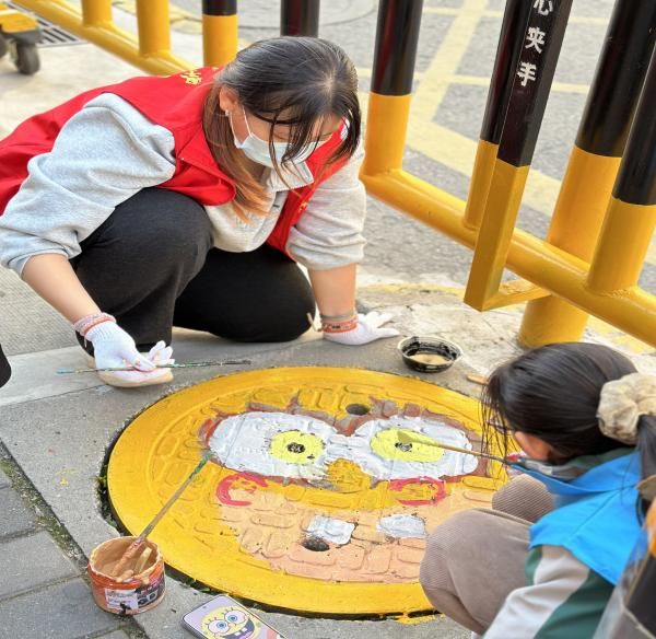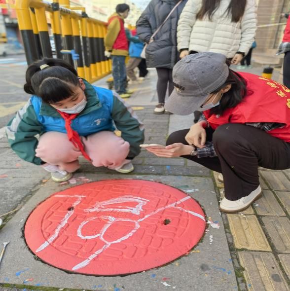 活动于11月20日下午两点在通济坊小学的校门口展开。在培华学子的耐心指导下,小学生们热情高涨地参与其中。孩子们充分发挥想象力,用五彩斑斓的环保颜料在冰冷的铁质井盖上尽情挥洒创意。经过一下午的精心绘制,校园里的井盖焕然一新。原本不起眼的“城市疤痕”被赋予了新的生命。这些独特的艺术作品与校园景色融为一体,形成了一道道靓丽的风景线,引得师生们纷纷驻足欣赏、拍照留念。