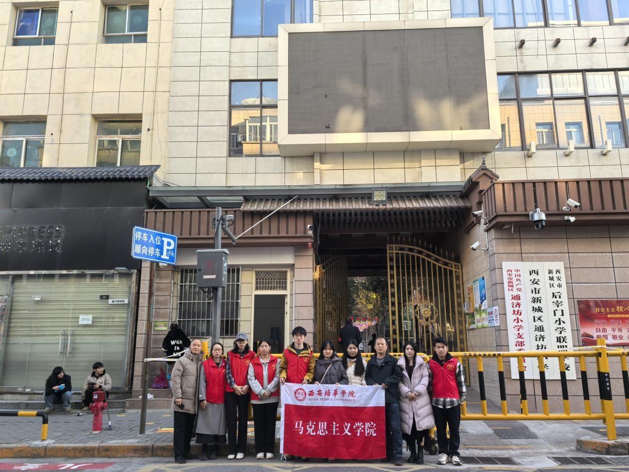 为进一步提升学生的社会实践能力,促进思政课理论与实践相结合,增强思政课的丰富性和感染力,习近平新时代中国特色社会主义思想教研室教师金青山、魏战刚、张晓朦、苏煜彤、毕静烨子,于2025年11月20日带领法学2408和2409班的5名学生走进西安市新城区通济坊小学举办了“公益彩绘”社会实践活动。大学生与小学生们携手合作,将校园中原本平平无奇的井盖变成了充满童趣与艺术气息的“地面画廊”,不仅美化了校园环境,更在孩子们心中播下了美的种子。