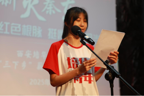在激昂的氛围中,寇军强副院长宣布2025年西安培华学院“薪火探源”实践队“三下乡”活动正式启程。