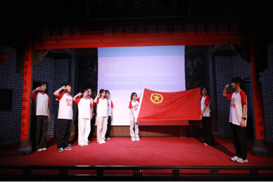 全体实践队员面向团旗庄严宣誓:“以青春脚步丈量渭南红色热土,于实践中传承红色精神;用青年视角讲好红色故事,以躬身行动服务基层群众…让青春在赓续薪火中闪光!”铿锵誓言彰显了知行合一、服务人民的坚定决心。