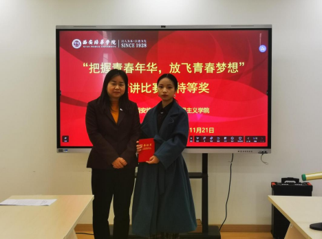 比赛结束后,由马克思主义学院霍艾湘副院长给各位获奖的学生个人或团队进行颁奖,获奖同学纷纷表示,这不仅是一次展现自我的机会,更是一次交流的机会、学习的机会。这次演讲比赛进一步激发了大学生们积极树立共产主义远大理想和中国特色社会主义共同理想,自觉践行社会主义核心价值观,大力弘扬爱国主义精神。更是让当代中国大学生们感悟到生逢其时、重任在肩,一定要树立远大理想,坚定走中国特色社会主义道路的信念,努力成长为有理想、敢担当、能吃苦、肯奋斗的新时代好青年。