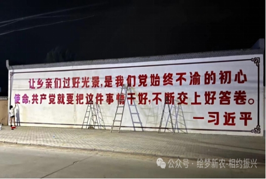 墙绘过程中,成员们认真负责,精益求精,他们精心构图、上墙、绘画、调制颜料,最后进行颜色填充。团队成员忙碌而有序,全身心地投入到墙绘创作中。随着作品完成,乡村面貌焕然一新,墙绘不仅美化了环境,更传递了价值观和理念,激发了村民的文化自信和参与乡村振兴的积极性,成为了文化振兴的重要载体和宣传新阵地。