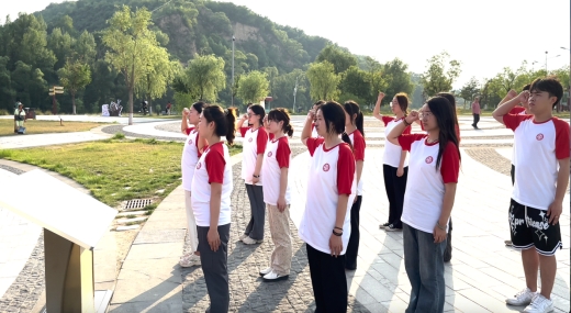 最后,实践队来到了南泥湾党徽广场。党徽不仅仅是一个标志,更是一种信仰。在这里,实践队成员面朝党徽,在指导老师景安娜和黄嘉鑫的带领下进行了庄严的入党誓词重温仪式,用铿锵有力的誓言表达了对党的忠诚和面对困难不屈不挠,勇往直前的勇气。