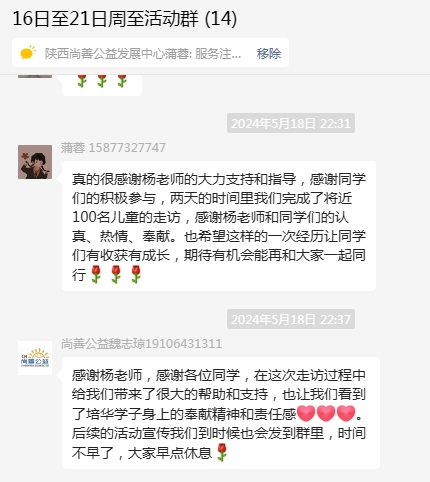 此次“走进周至,探访困境儿童”计划,不仅为周至县的困境儿童带来了希望和关怀,通过提供服务和政策宣讲相结合的方式,让孩子们感受到社会的关爱,更好地融入社会。也为参与的志愿者们上了一堂生动的社会大课堂,展现了新时代青年的风采和责任。通过这样的实践活动,我们有理由相信,周至县的明天会更加美好,困境儿童的未来将充满希望。一些困境儿童的监护人在我们探访中多次由衷真挚的表达“感谢党和政府对我们一家的关怀”“如果没有这些关怀,自己的家庭不会有现在的幸福生活”,现在是“不愁吃不愁穿”“国家补贴住房,教育有保障,医疗有保障”。