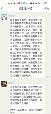 在理论“破冰”之后,教师抛出关键问题:“如何用联系的观点理解中华民族共同体?”学生们通过云班课平台实时上传观点,屏幕瞬间化作“思维火山”:有人从“丝绸之路”切入,分析商贸往来如何编织跨地域、跨族群的利益纽带;有人聚焦“抗疫”案例,论证“你中有我、我中有你”的命运联系;还有人结合家乡变化,讲述对口支援政策如何打破区域壁垒,让“山海的距离”转化为“携手的温度”。教师即时为“金句”点赞,并邀请高频获赞的同学分享,课堂气氛热烈。