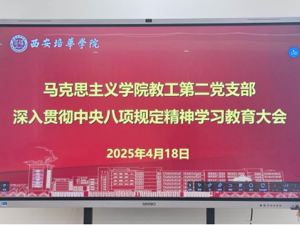 为深化作风建设,推动中央八项规定精神在基层落实落细,2025年4月18日,西安培华学院马克思主义学院教工第二党支部在博远楼2501B会议室召开深入贯彻中央八项规定精神学习教育大会,支部全体党员参会,会议由马克思主义学院教工第二党支部组织委员马帆主持。