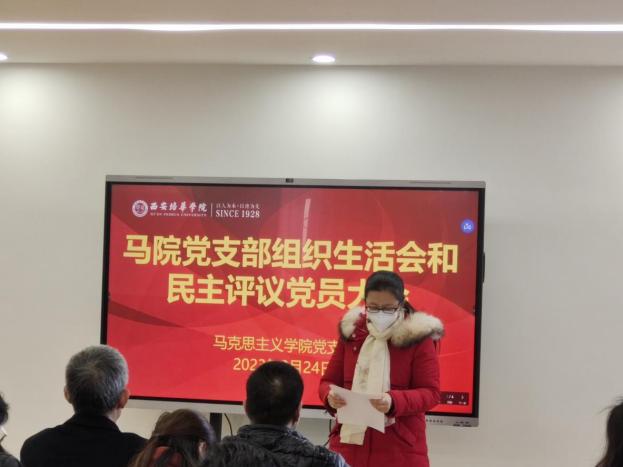 为深入学习贯彻党的二十大精神,全面贯彻习近平新时代中国特色社会主义思想,马克思主义学院于2023年2月24日下午,召开了组织生活会和民主评议党员大会,本次会议由党支部书记寇军强主持,大会有两项议程。
