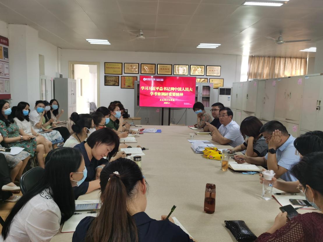2022年6月2日上午10时,在马克思主义学院会议室,马克思主义学院院长田亮教授带领马院全体教师学习了《习近平总书记给南京大学留学归国青年学者的回信》、《习近平总书记到中国人民大学考察调研重要精神》。