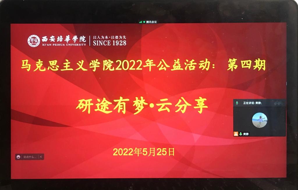 5月25日晚7点,马克思主义学院在线上成功地举办了第四期“研”途有梦云分享公益活动。本期云分享会邀请了我校会计与金融学院2013级校友李唐博士(在读博士,目前就读于西北大学马克思主义学院)为大家做了题为 “跨专业考研——由财务管理专业成功跨考法学专业研究生” 的分享。马院学生社团——青年行研学社、历史与文化协会等60多名师生参与了此次分享会。
