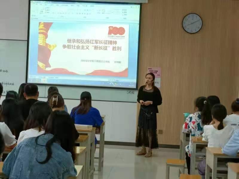 录制完微党课,马克思主义学院又组织全体教师在各自的教学班级开展党史进课堂活动,并组织学生进行了讨论,既丰富了思政课实践教学的形式和内容,提高了教学质量和效果,又让同学们接受了革命历史的洗礼,思想上得到了升华。