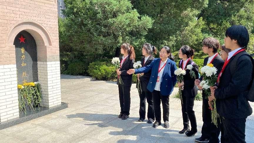 活动间隙,赵艳老师还将思政课堂“搬”到现场,在宣传栏和烈士墓前等重要场所,为同学们生动讲述革命历史与烈士事迹,引导学生深刻理解革命精神的内涵。