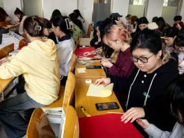 传统手工,欢庆国庆。在国庆节来临之际,西安培华学院马克思主义学院的老师们在课堂上,组织师生手工制作国旗、红灯笼、团扇等,通过师生的积极参与DIY互动,一面面红旗、一个个灯笼、一把把团扇的制作中飘扬耀眼的一抹抹“中国红”,课堂中洋溢着喜庆热烈的节日气氛,同时也成为思政课堂中靓丽的风景线。在师生们制作过程中,共同将对祖国的热爱,对国家祝福的万千情谊汇成一句:我爱你,中国!