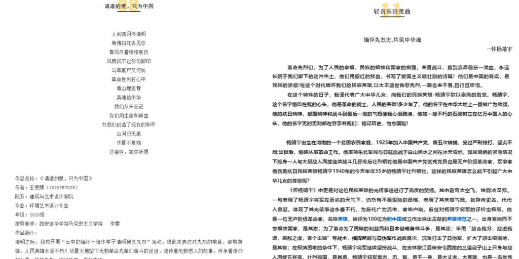 清明节,源自上古时代的祖先信仰与春祭礼俗,兼具自然与人文两大内涵,既是自然节气点,也是传统节日。在清明节期间,缅怀先烈、祭扫先烈是弘扬先烈精神与传承红色基因的重要内容。缅怀先烈,重于心胜于形,为此,马克思主义学院开展了“云中的缅怀——培华学子清明悼念先烈”活动。