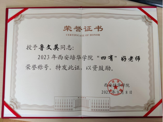 鲁文英,女,中共党员,马克思主义学院《中国近现代史纲要》教研室主任。先后担任学院党支部副书记,马院教工第一支部书记。时光荏苒,岁月如梭,在培华的二十多个春秋,她始终坚守着服务培华师生,无论是教学支持、学生活动组织,还是日常事务处理,她都全心投入,力求做到最好。