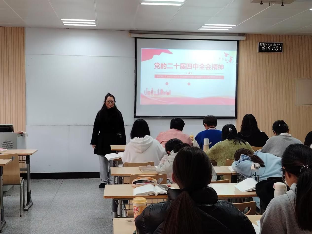 11月3日,正值学习贯彻党的二十届四中全会精神热潮之际,教室3304内思想碰撞热烈,杨志梅老师、魏战刚老师分别为汉语言文学202401班与英语202401班学生授课,将全会精神精准融入新思想课堂,让理论学习既富思想深度又具学科特色。