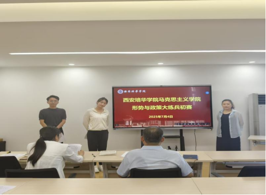 为认真贯彻落实习近平总书记关于高校思想政治理论课的重要指示精神,全面提升教师思政教学能力与育人水平,马克思主义学院形势与政策教研室于7月4日上午在2501B会议室组织并开展了“思政教师大练兵”初赛活动。