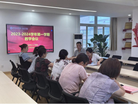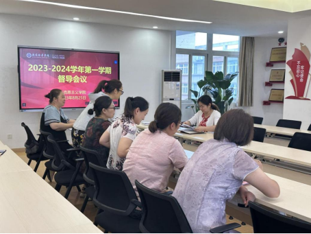 2023年8月25日下午14点30分,马克思主义学院在五楼会议室召开2023-2024学年第1学期教学会议和督导例会,教学副院长霍艾湘老师负责主持,参会人员有寇军强副院长、六位教研室主任、办公室主任以及教学干事。