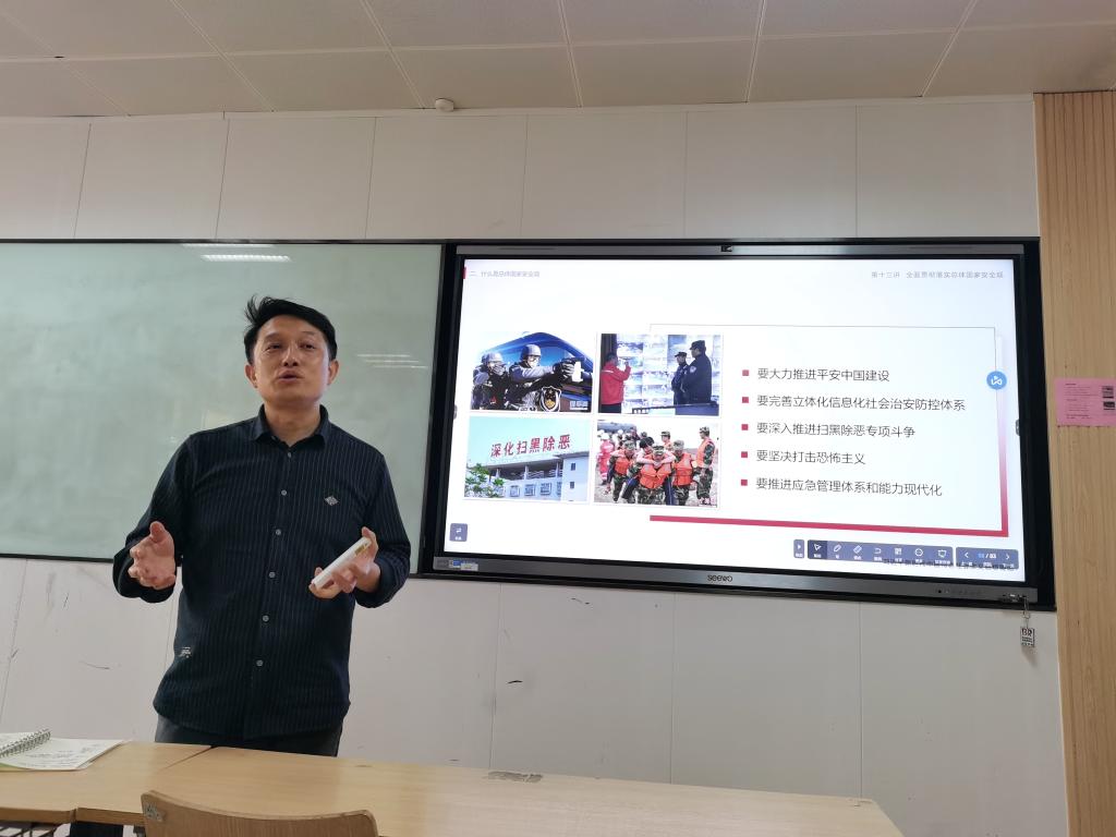 3月20日,马克思主义学院《习近平新时代中国特色社会主义思想概论》教研室组织开展名师示范课观摩活动,在博远楼2302教室,阮博博士对青年教师就“全面贯彻落实总体国家安全观”的内容进行了示范授课。