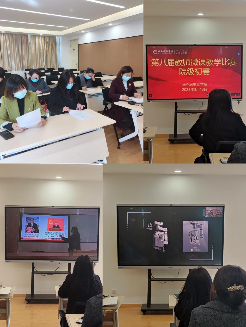 3月13日上午,马克思主义学院第八届教师微课教学院级比赛在博远楼2501B会议室举行。会议由霍艾湘副院长主持。